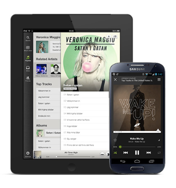 On mobile, you can listen to artists, albums and playlists in shuffle mode. Or choose a ready-made playlist to suit your mood. On tablet and computer, you can play any song, anytime.