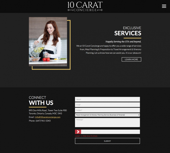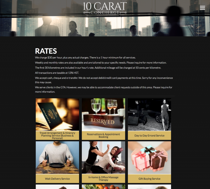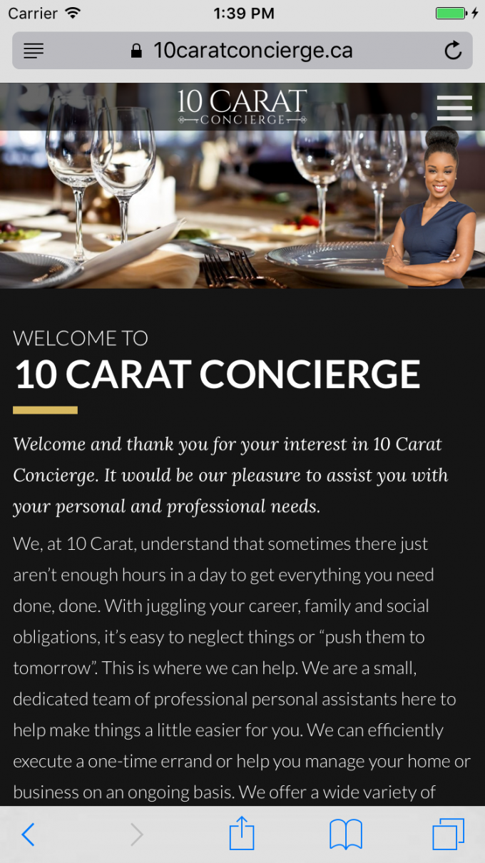 This Toronto based concierge business required a website to give her credibility in the industry and provide an easy to use vehicle to communicate the services she provides and deliver an easy method of connecting with her.