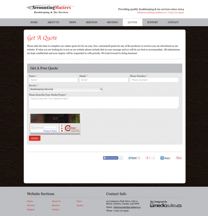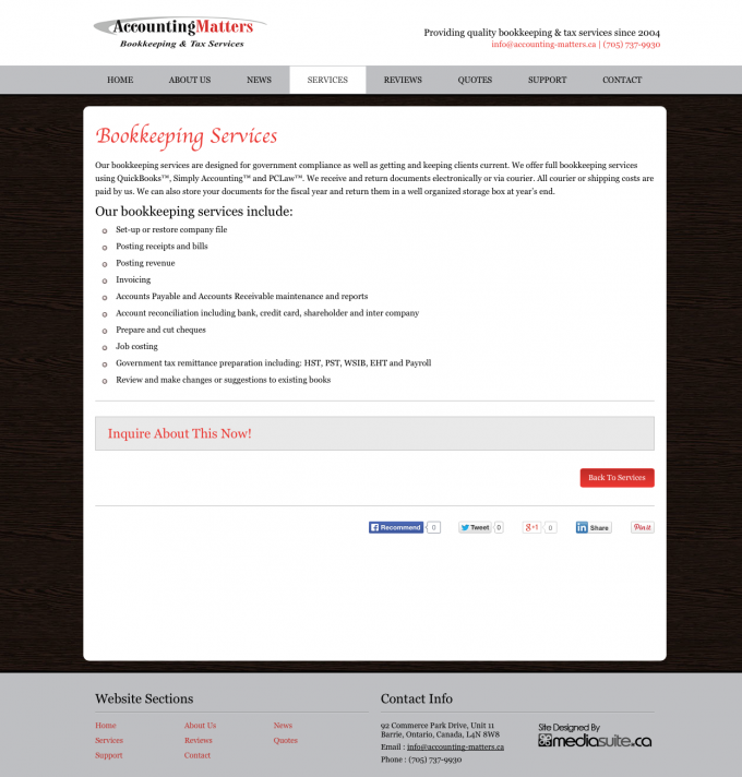 A local small - medium sized business accounting firm with deep roots in Barrie finally decided to get a website to promote the well established company.