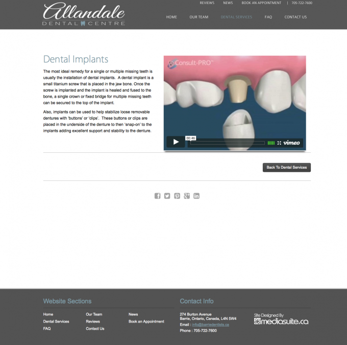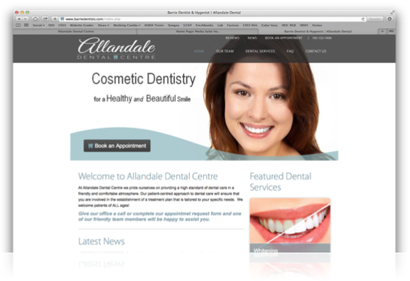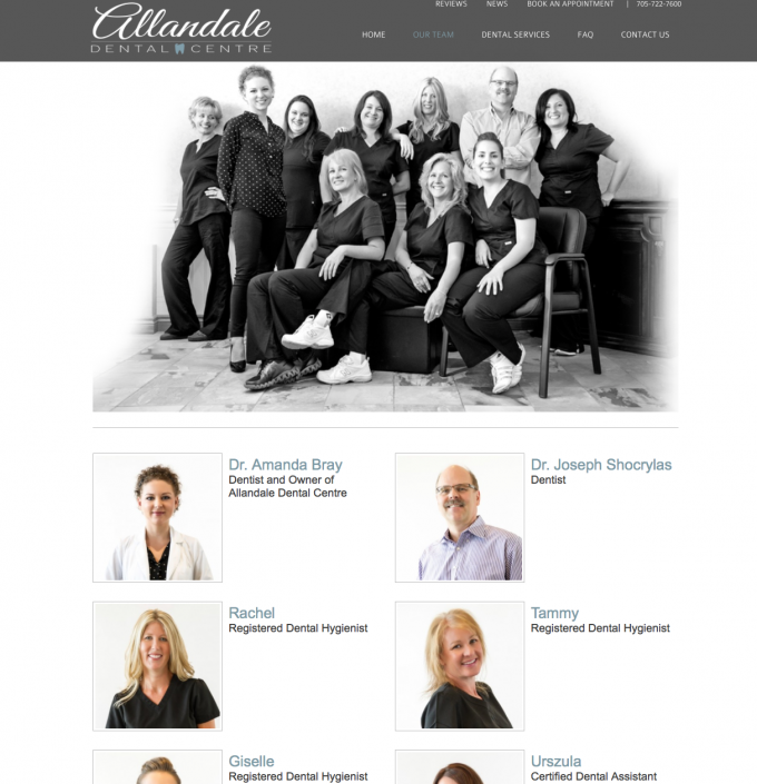 When Allandale Family Dental was purchased by new owner Dr. Amanda Bray in 2014 she had big plans for a complete re-branding. We created a beautiful, modern and clean logo design for the office and then a custom website design with parrallel design in clean lines, easy to follow navigation and access to the fundamental resources of an effective dental website.