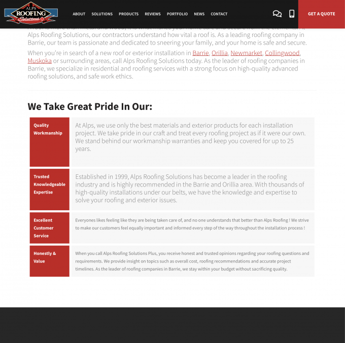 This roofing company takes things very seriously and the attention to detail in this site is no exception to that. Quality workmanship on all fronts!