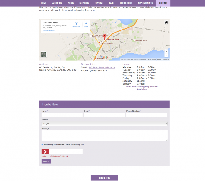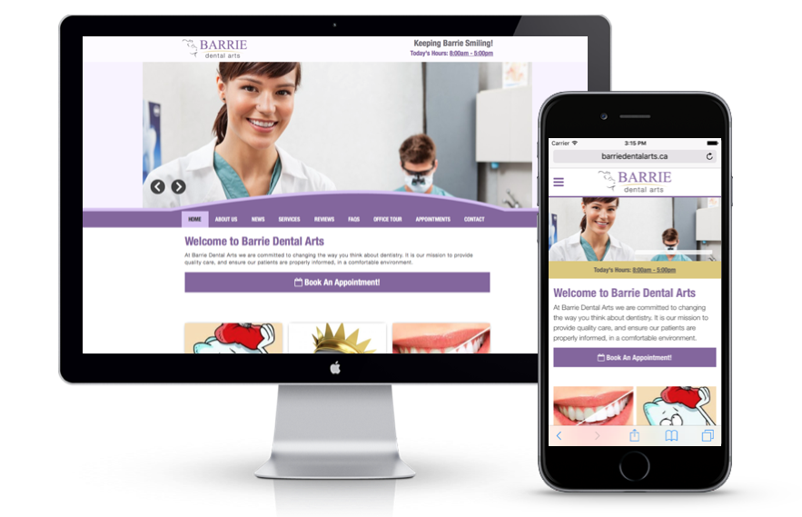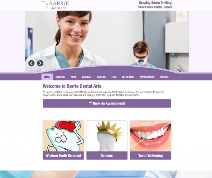 This local dental office operated for years without a website and this year needed to have a destination for an upcoming radio campaign. We designed a very clean and easy to update website for Barrie Dental Arts that showcases the range of dental services they provide, offers a convenient booking form, news and a team profile system.