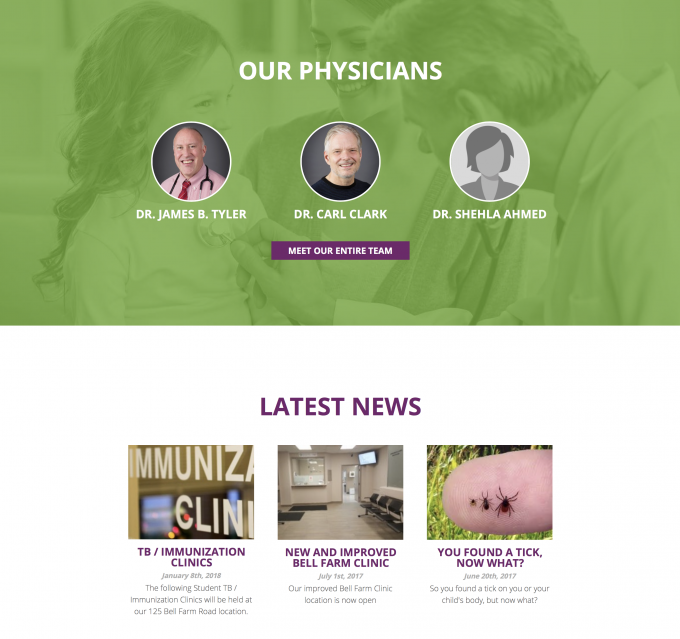 This site offers easy access to important info such as hours of operation, flu clinics, doctors and more!
