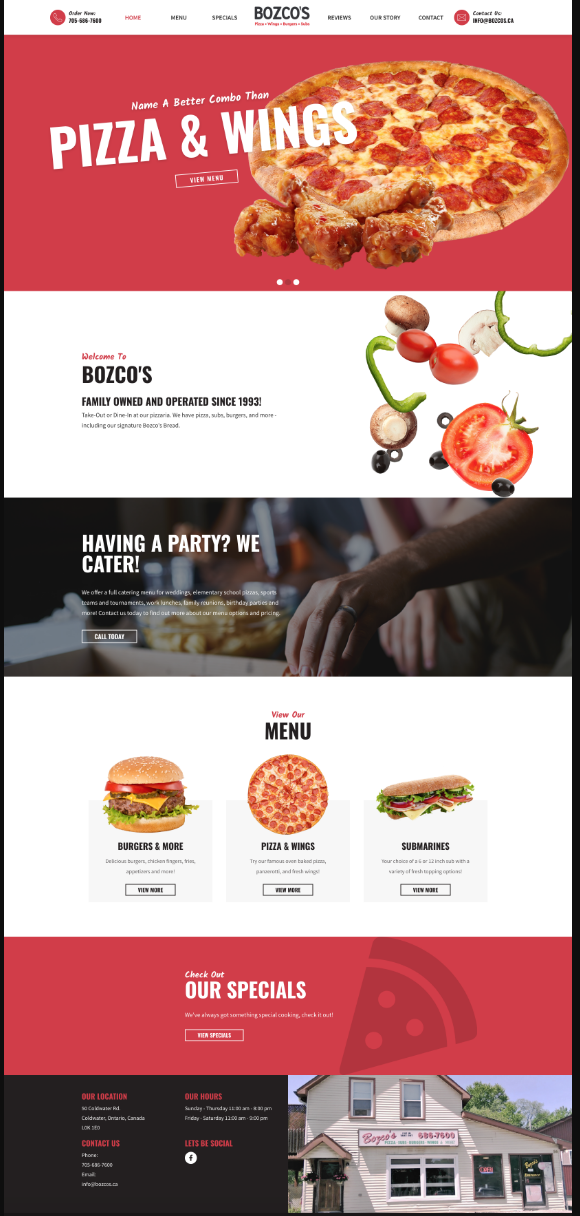 We offer a full catering menu for weddings, elementary school pizzas, sports teams and tournaments, work lunches, family reunions, birthday parties & more