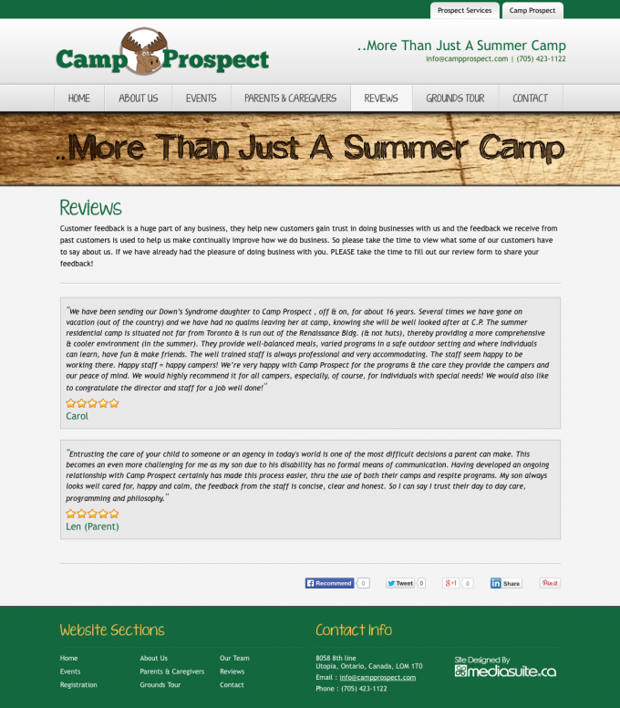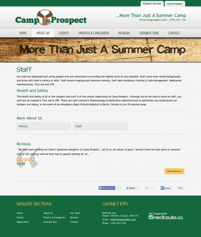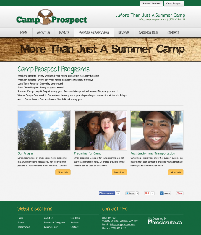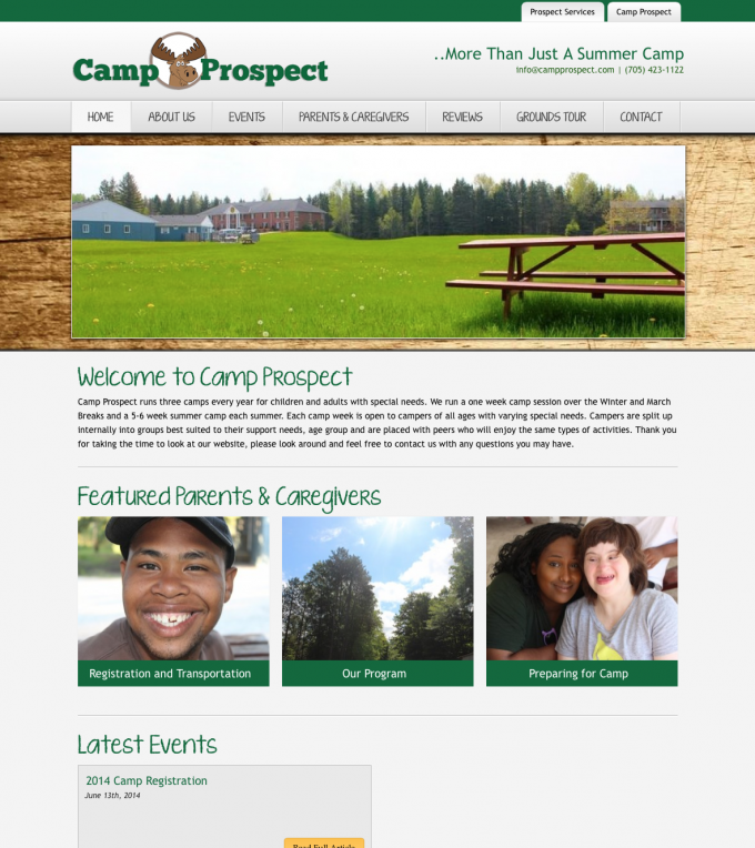 Camp Prospect runs three camps every year for children and adults with special needs. We run a one week camp session over the winter and March breaks, and a 5-6 week summer camp each summer. Here we developed a really clean, fun and easy to navigate site for the camp that showcases photo galleries, camp programs and so much more.