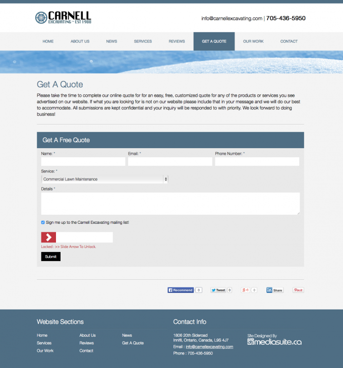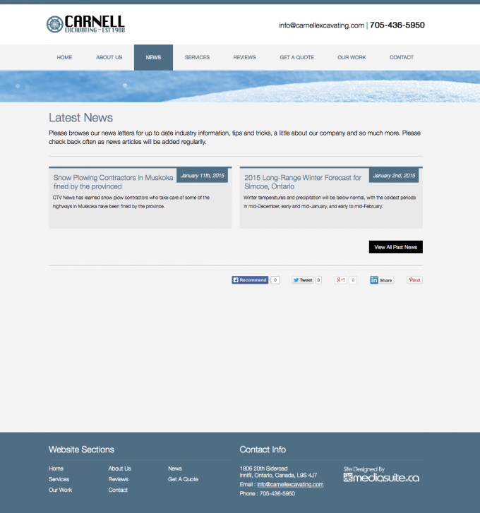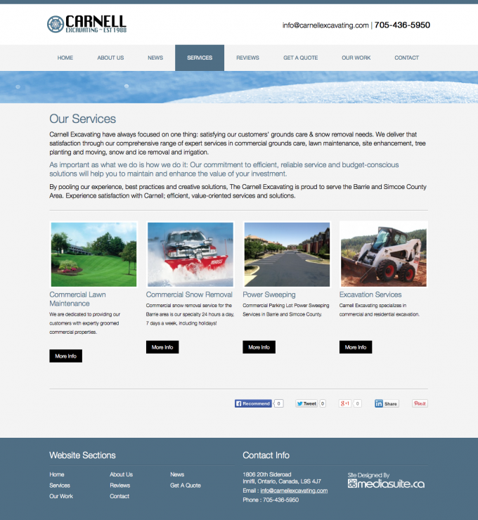 Carnell Excavating is a decade old company that has grown vastly over the years. Providing snow removal, and management to commercial yard care services and parking lot sweeping. While their customer base is strong, they wanted to finally get a professional, clean and easy to follow website to tell their story and provide customers easy access to connect with them.