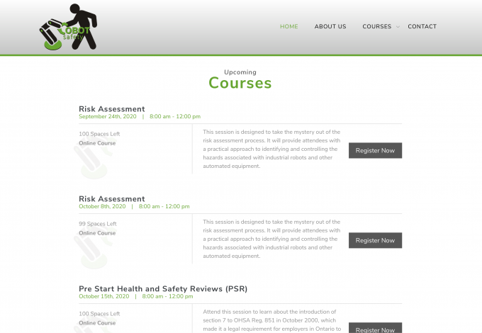 This robotic safety training company needed a website to facilitate access and registration to their online and location workshops including payment.