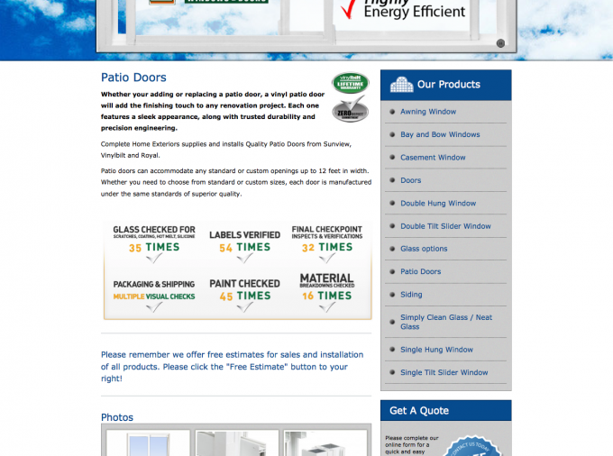 At Complete Home Exteriors, we specialize in windows and doors, and we know that the best windows and doors will not perform to their full potential if they are installed incorrectly. We also know that our cold winters and our hot summers can cause heating and cooling bills to soar. That is why we take great pride in offering the highest rated, most high efficient windows and doors available on the market today. Our top rated brand name products, our top quality professional installations, great service and competitve pricing, set ourselves apart from our competitors.