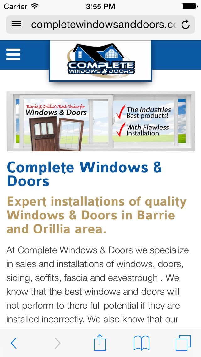 Formerly known as Complete Home Exteriors, this company decided to make a change in 2015 to focus more on the Doors and Windows sector of their business, and in addition to a name change, took this opportunity to completely overhaul the website to give it a fresh new design and a mobile friendly version.