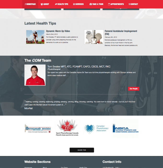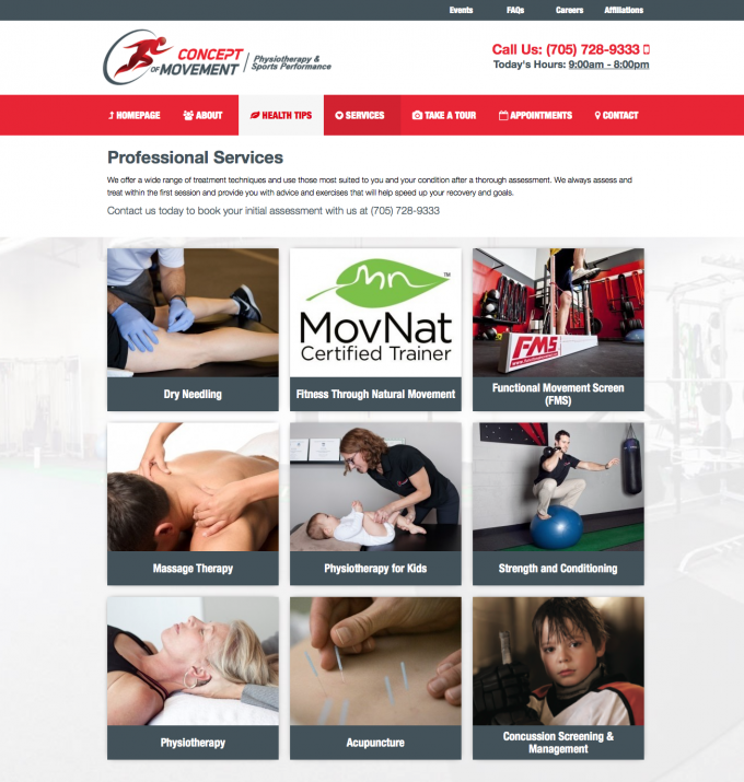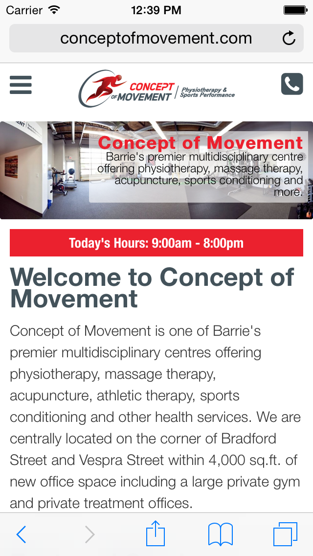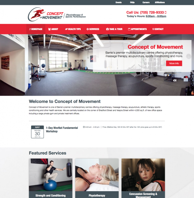 Concept of Movement is one of Barrie's premier multi-disciplinary centre’s offering physiotherapy, massage therapy, acupuncture, athletic therapy and sports conditioning, and other health services. in 2012 They were recognized as Barrie's favourite physiotherapist, personal trainer and acupuncture by the Barrie Advance Readers Choice!