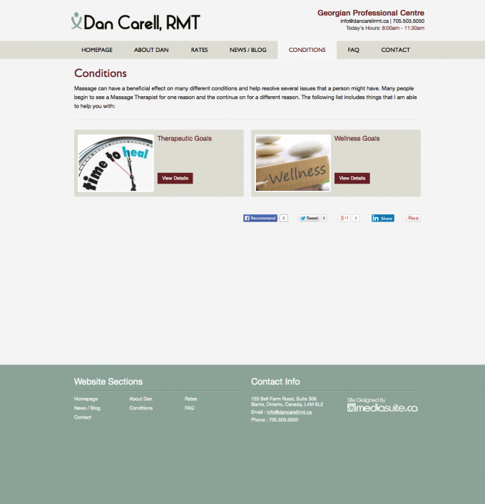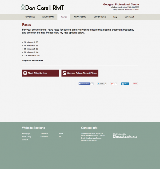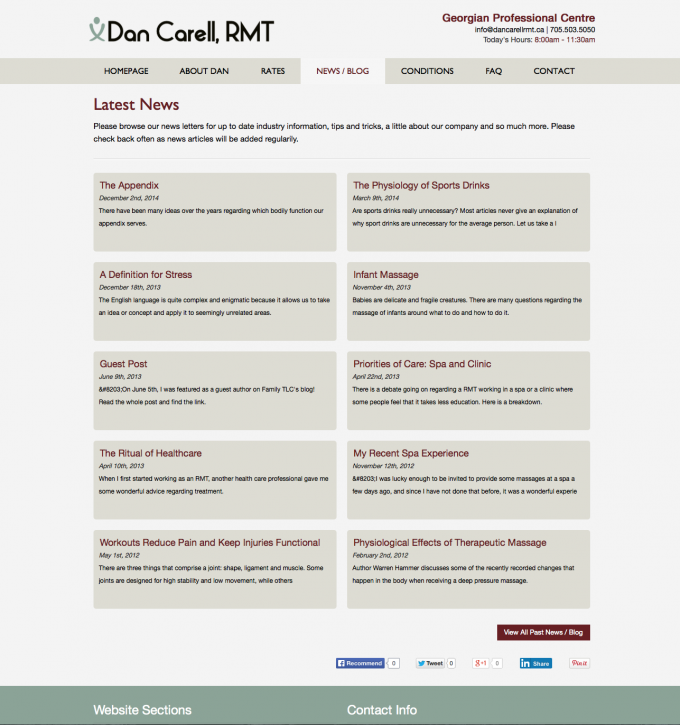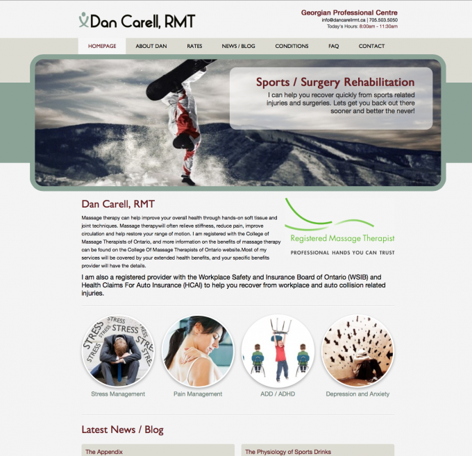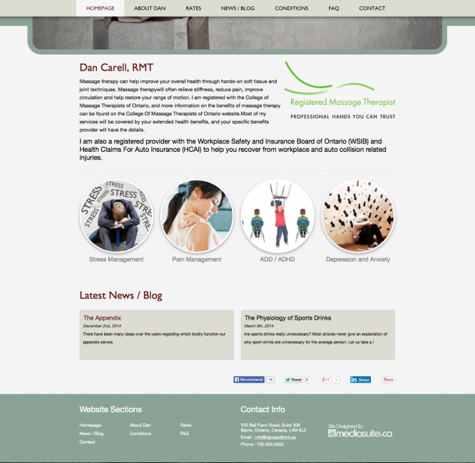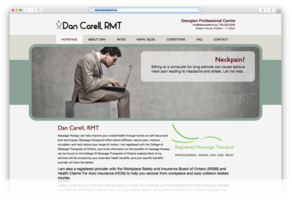 After years of having his own DIY website Dan wanted to turn it up a notch and get into a professional custom design that allowed him the freedom to still make updates to the site whenever he wanted through an easy to use Content Management System. He also wanted a clean professional website design that represented the professionalism of his RMT business. This site makes it easy for his customers and potential new customers to find his rates, learn about the benefits of massage therapy and easily connect with him.