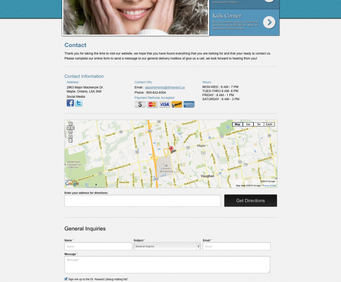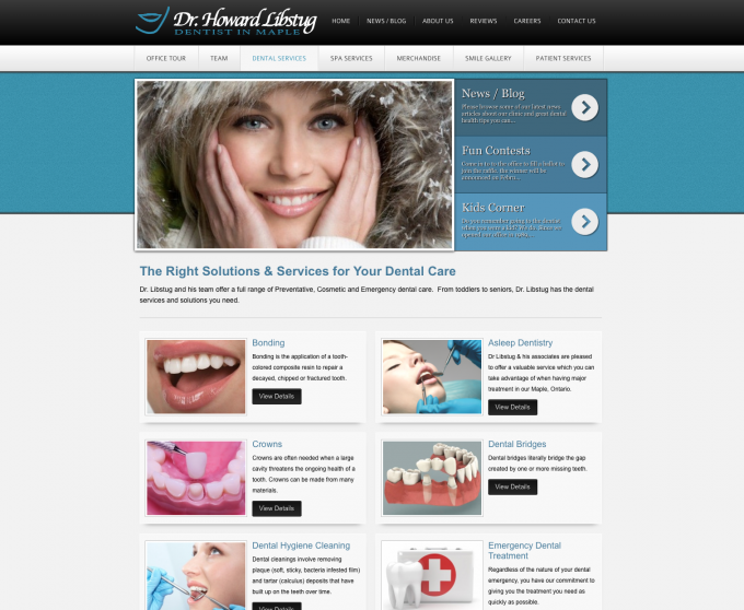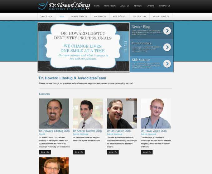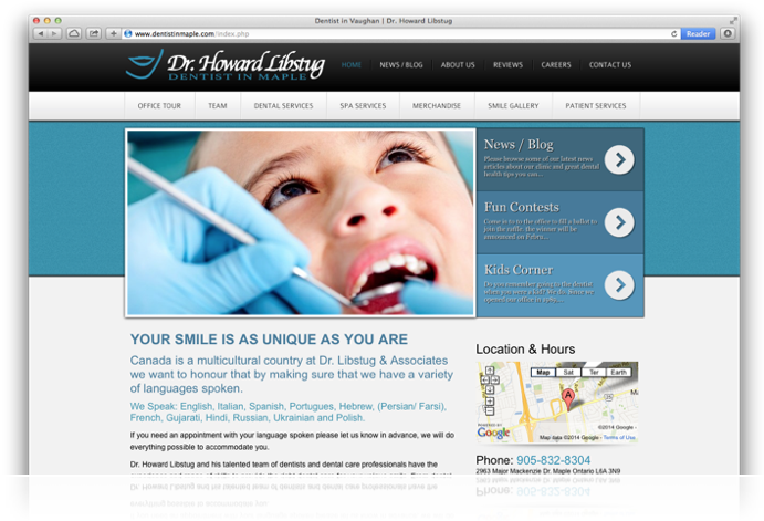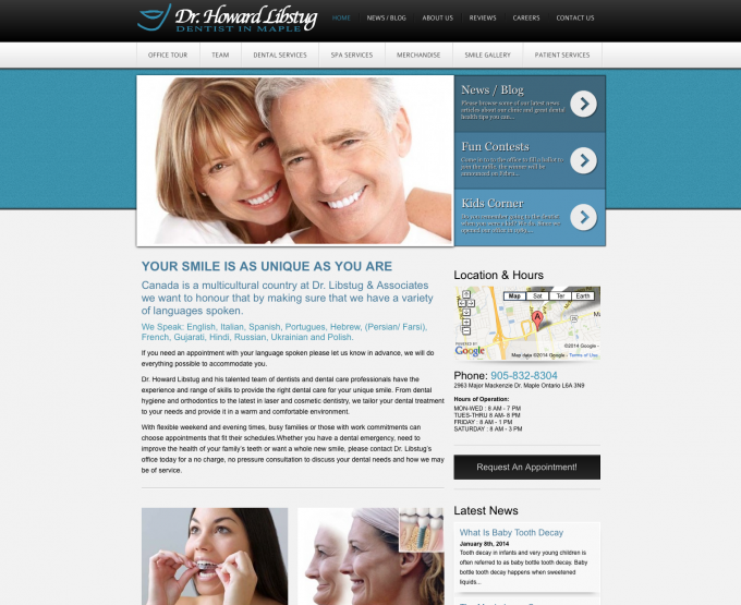 Dr. Howard and Angie Paris from Dentist in Maple contacted us this fall to build a very cool website for this very, very cool dental office. We have designed a couple of dental websites before but none with this amount of content and sections.