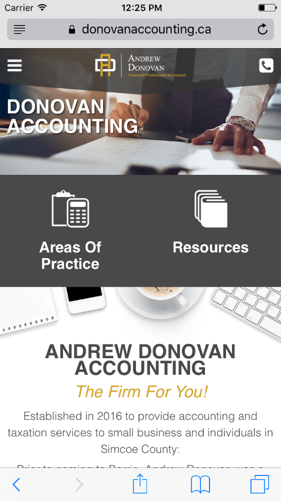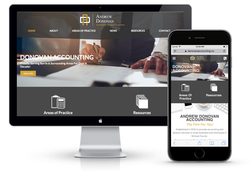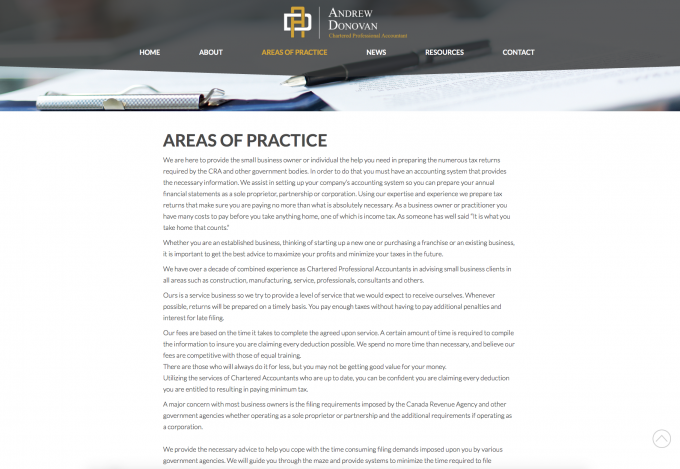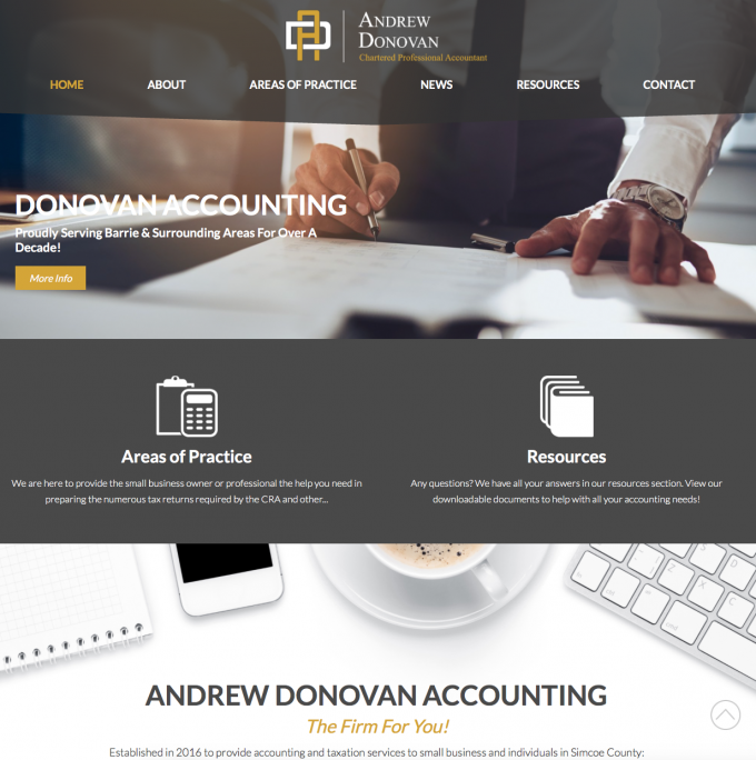 A local Chartered Accountant in Barrie needed a clean and timeless design that made it easy to access critical content about his business.