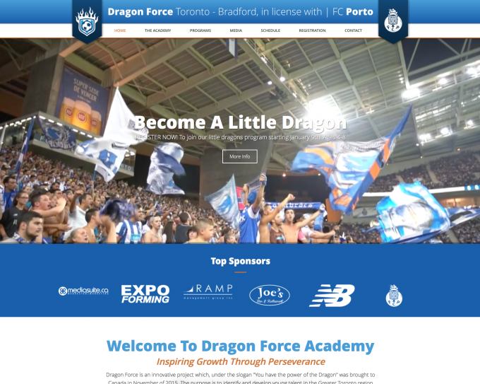 This popular soccer club needed a website that created enthusiasm, represented the brand of the organization and was easy to navigate. Here we crafted a brilliant custom website design project for Dragon Force that facilities online registration with payment for the camp programs, provides an easy to use system for managing their schedule and mucn more!