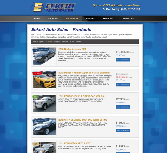 This local dealership wanted to go mobile with their website but also had some great ideas for their destop version as well. With a rebranding in motion we turned out an awesome new look for Eckert that provides some fun javascript animations for displaying vehicles and an extremely easy to use system to add and manage their inventory.