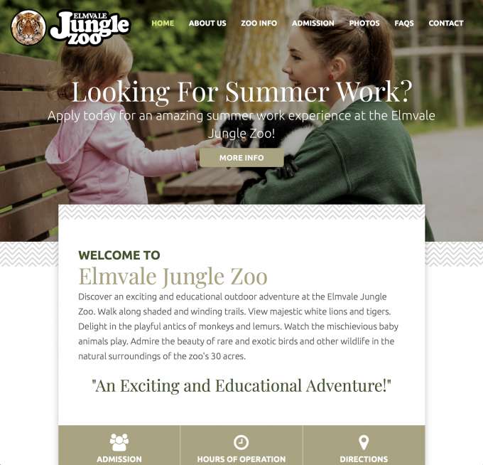 Here we developed an incredible website for the popular Elmvale Jungle Zoo providing outstanding convenience to customers and easy access to important info