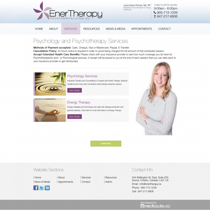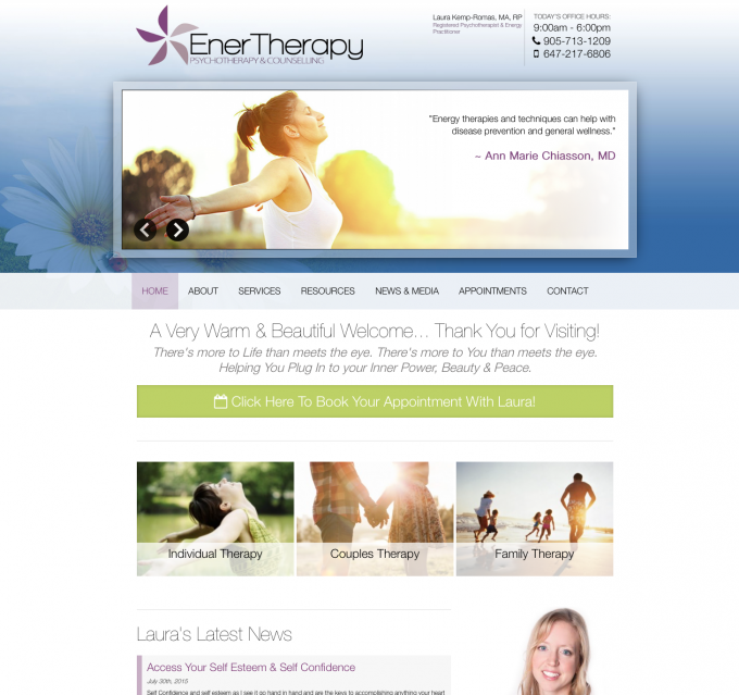 This lean and professional website offers an easy to navigate overview of Laura Kemps Psychotherapy services powered by our easy to use Content Management System Command Centre.