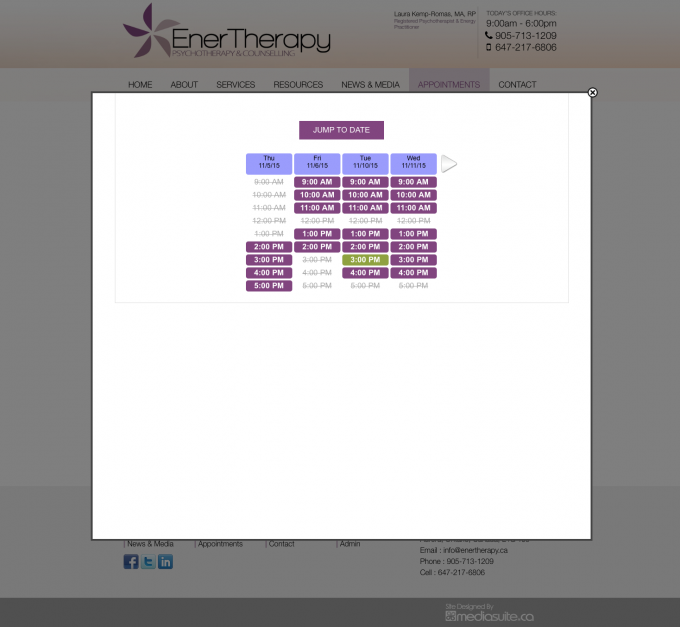 Some of the unqiue features of this site include the integration of a real time booking system that allows Laura's customers to view available timeslots and book their appointments online with online payment! This can be completed on both desktop and mobile devices!