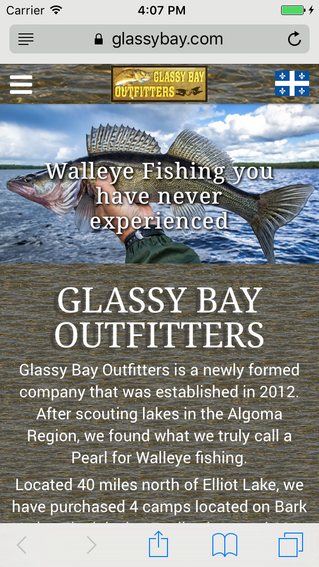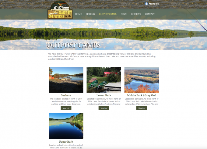 After a very successful development for their other camp, Moose Territory Lodge, we were hired to update the website for their fishing camps. Glassy Bay Outfitters. This awesome design provides a very photo intensive and modern navigation of their camps with easy access to great content and a completely accurate French conversion system with style protection.