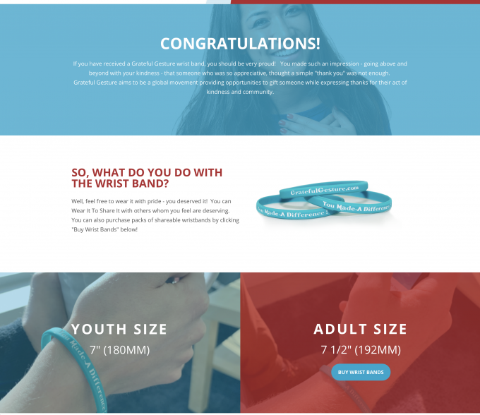 This website promotes a unique global movement for thanks and facilitates online purchasing for the movement bracelets.