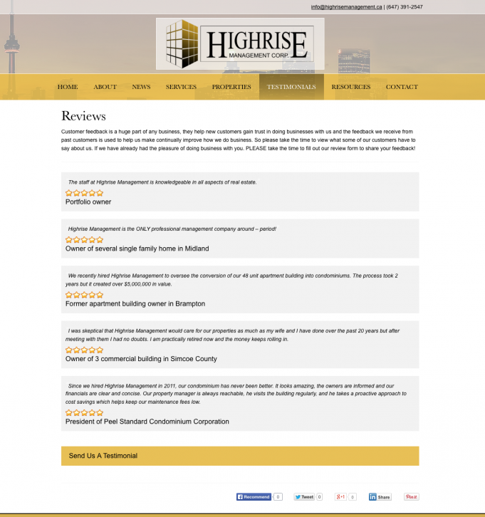 Highrise Management has been proudly serving the property management and real estate investment industry since 1988. In that time, we have established a proven track record in nearly every sector of the real estate market through providing unparalleled service to our clients while maximizing the value of their assets.