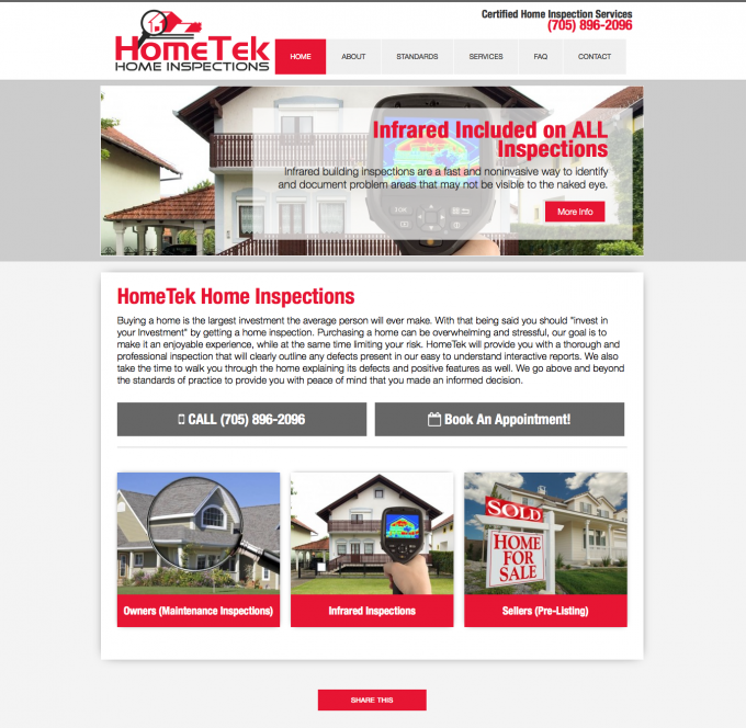 This new home inspection business wanted a custom designed website that would make an impact, and was going to give them the credibility and professional representation they needed. This website delivers easy access to important information for prospective clients and provides HomeTek the ability to update information very easily through Command Centre content management system.
