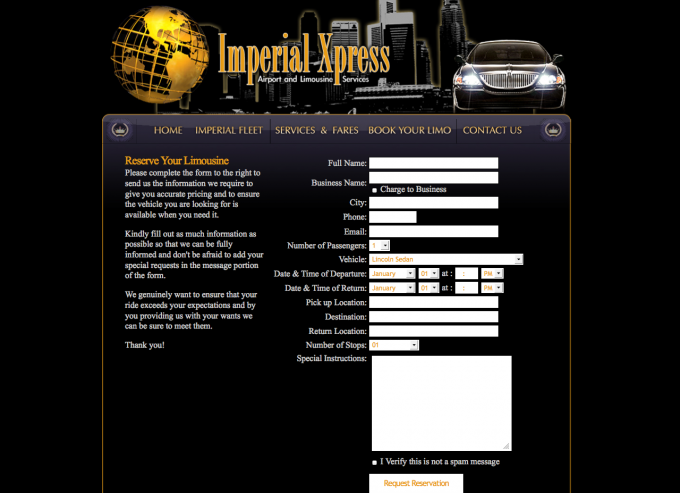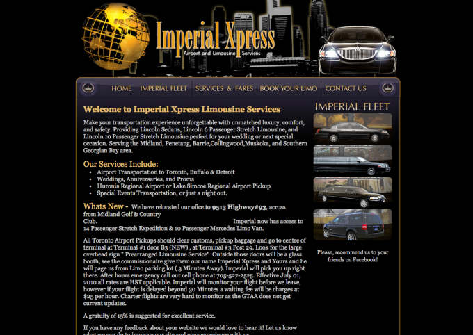 In 2006, Imperial Limousine required an online identity that attracted visitors and looked really, really cool. Media Suite built a graphic rich and prestigiously branded site, which attracts customers, is easy for Imperial to update and accepts reservation requests. This site makes it fun to explore the vehicles and easy to see on any browser, with weak or strong internet connections. Today, Media Suite still works closely with Imperial Limousine and ensures that this beautiful website will always work hard to draw new business.