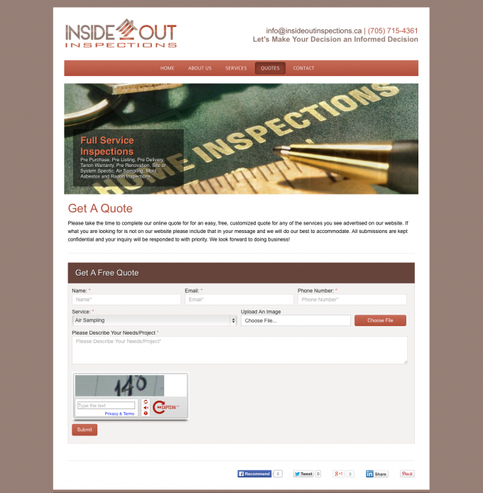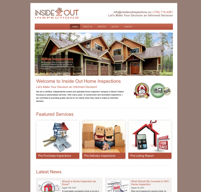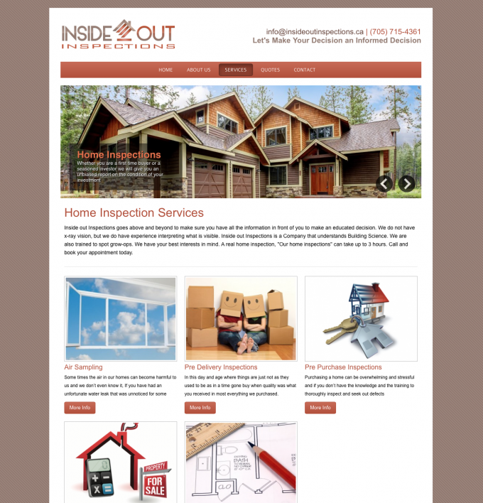This new home inspection company in Barrie, Ontario wanted a professional and highly organized site they could use to gain credibility in the market, showcase their industry knowledge and provide an easy to navigate understanding of the home inspection services they provide.
