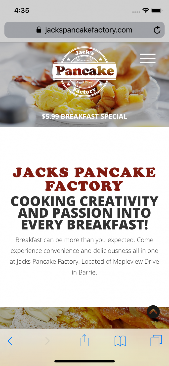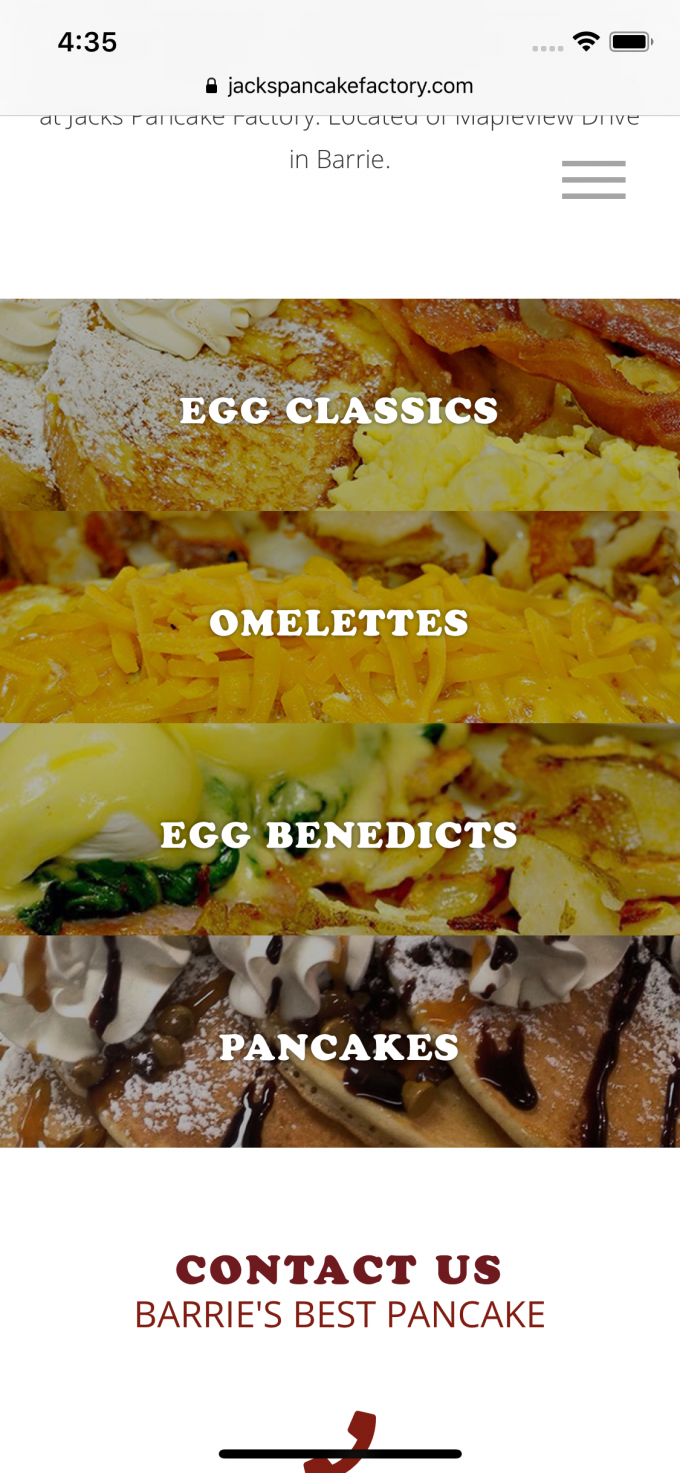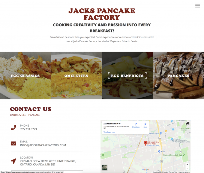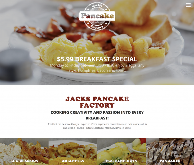 A new breakfast restaurant in Barrie wanted a custom website design that was very easy to navigate and access their amazing menu.