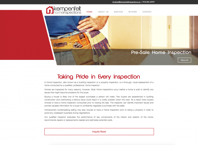 This new inspection company in Barrie needed a clean and professional website to gain industry credibility and provide new customers an easy to navigate over view of the professional services he provides and access to contact information. This custom website provides an a timeless design easy navigation, our powerful content management system (Command Centre) and is a mobile friendly website.
