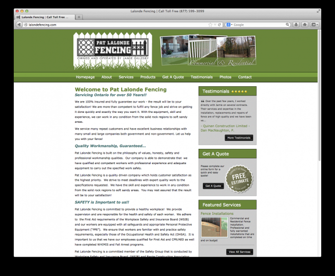 Pat Lalonde Fencing is built on the philosophy of values, honesty, safety, and professional workmanship qualities. Our company is able to demonstrate that we have qualified and competent workers with professional experience and adequate equipment to carry out the specified work safely.