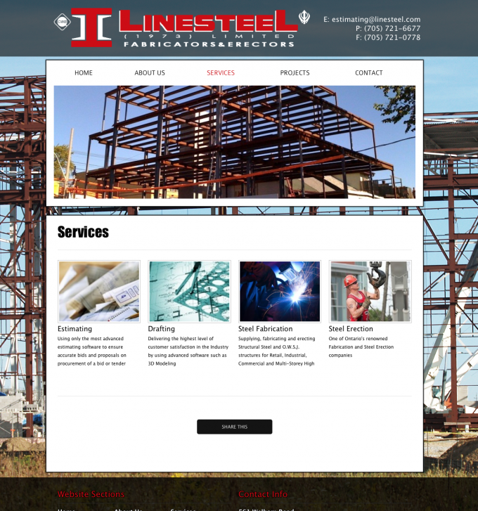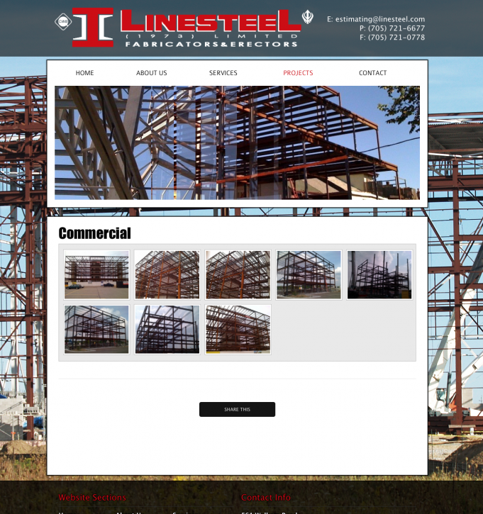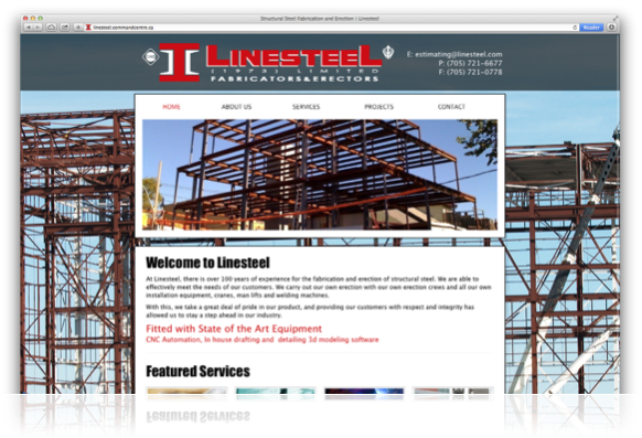 Linesteel is a large steel fabrication facility erecting some of the largest buildings in our area from Lowes department stores, to Canadian Tire. This successful business needed a website that illustrated the capabilities, capacity and professionalism of the company. They also wanted a website that could be self maintaned easily and efficiently. Our Custom Content Management System, Command Centre, we had the perfect fit for this custom website design.