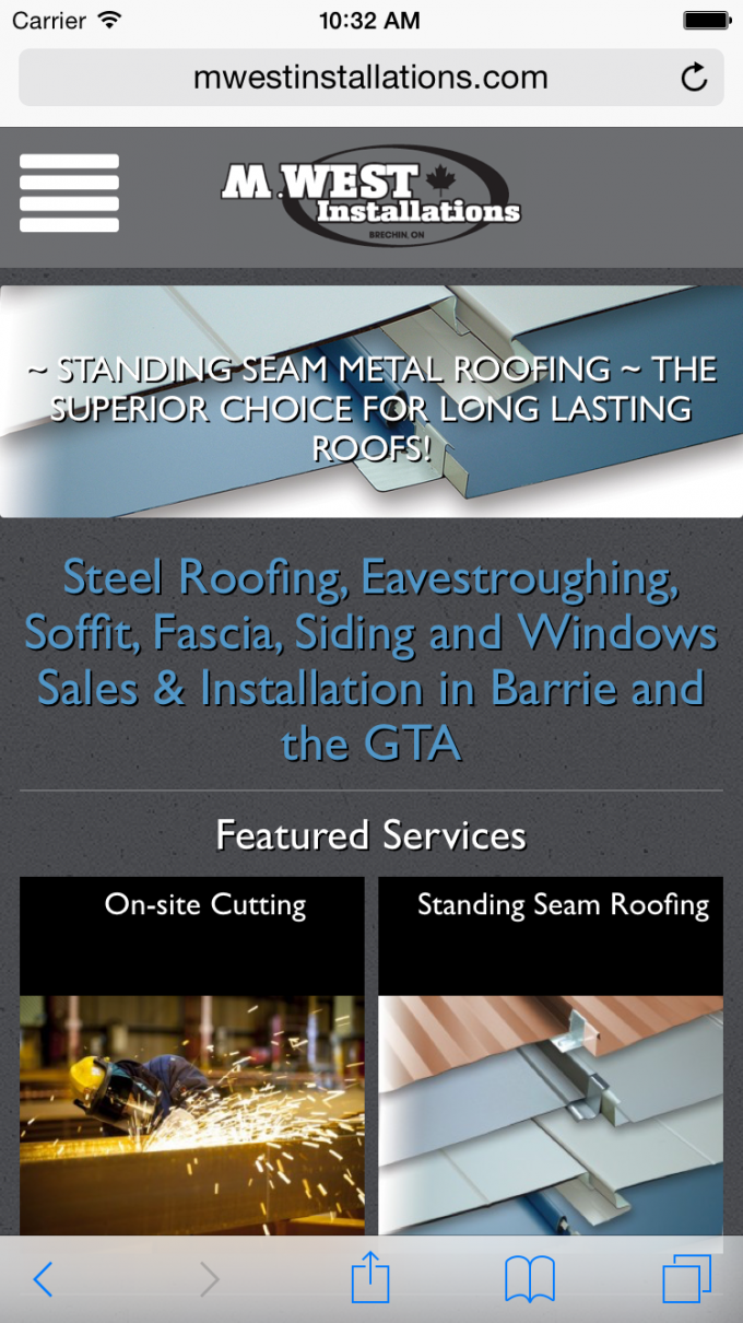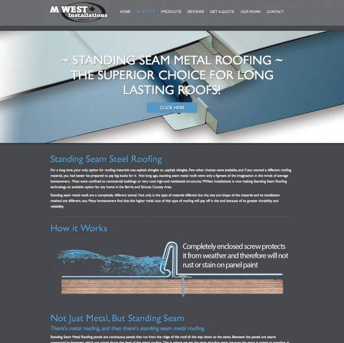 This local roofing company has a very unique product, the standing seam steel roof. This elite product needed a website to promote its benefits and present the company in a professional manner that matched the calibre of product and service they provided. Here we created a beautifully clean custom website design that provides easy access to the services they provide and the products they sell on both desktop and mobile browsers