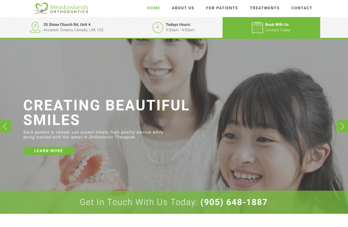 This orthodontics office out of Ancaster was referred to us by a very happy dental office nearby. Here we created a very clean and easy to navigate website