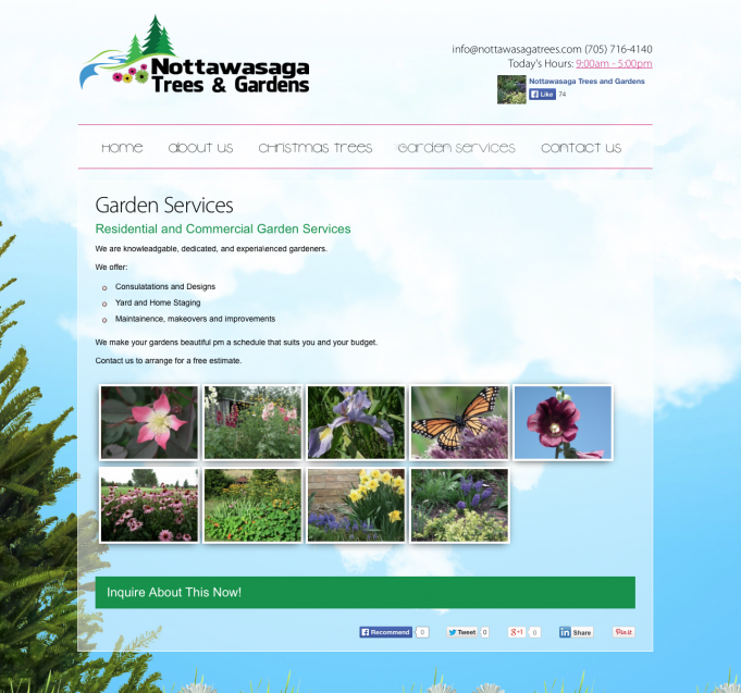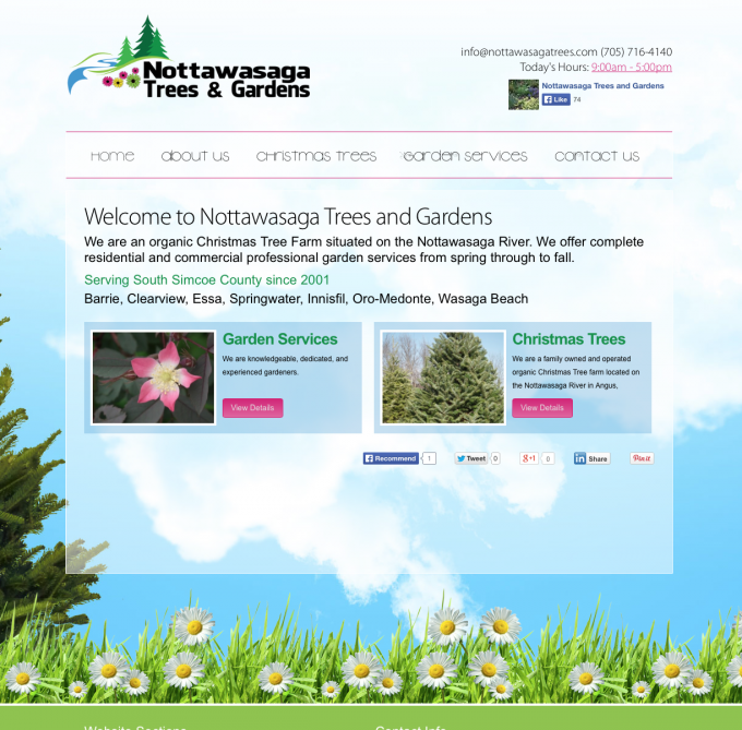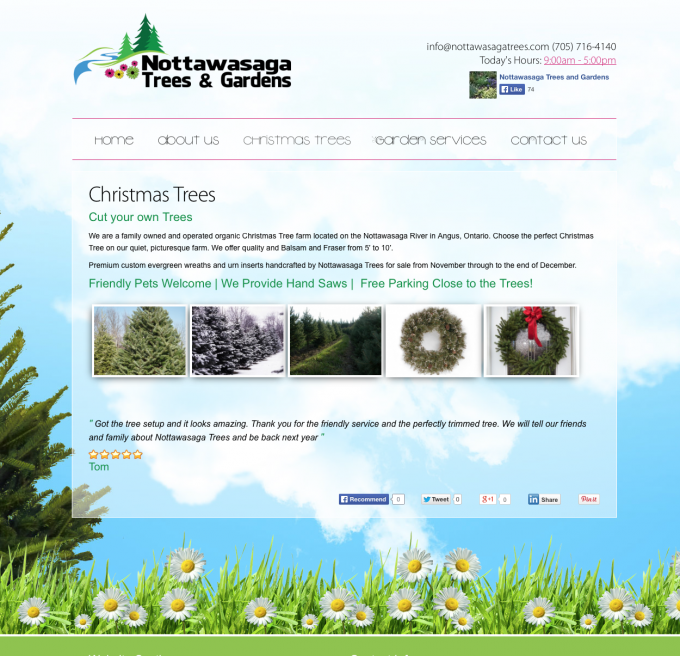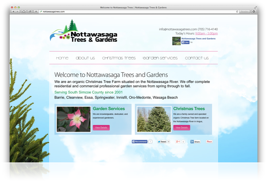 An organic Christmas Tree Farm situated on the Nottawasaga River, offering complete residential and commercial professional garden services from spring, through to fall. Since 2001, Nottawaga Trees has been a popular destintation within Simcoe County every year for Christmas trees, and this year they decided to expand to provide garden services as well. As part of this growth, they decided it was also time to update their logo, build a beautifu,l yet simple, website, and have branding updates.
