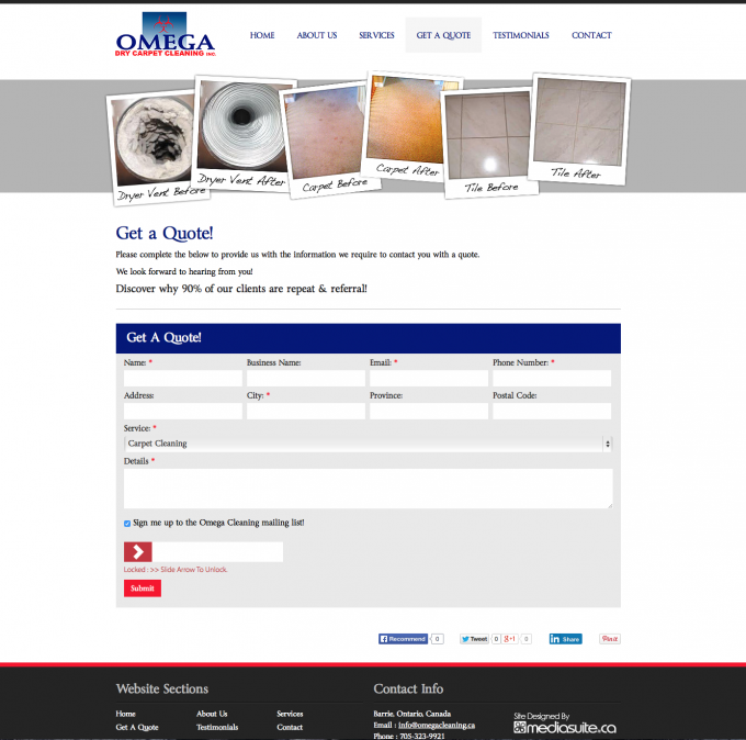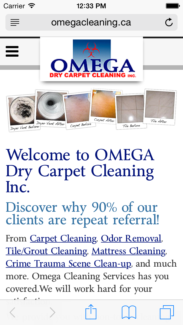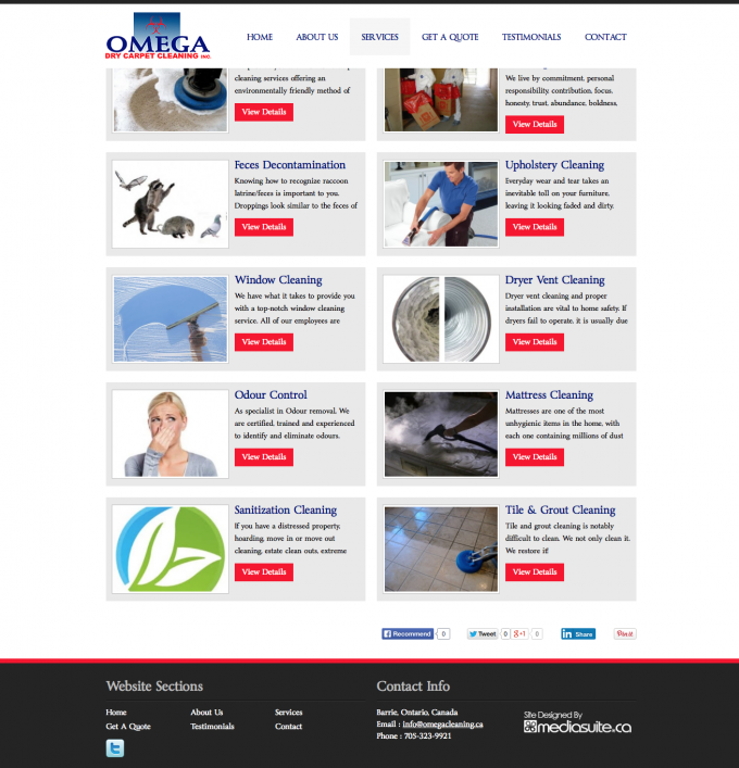 Omega cleaning is a full service cleaning company who approached us in 2005 to develop a website for the company that was easy to update and provided a professional look and easy navigation for visitors. We created a very “Clean” looking website that showcases all of the services available at Omega Cleaning: customer testimonials, contact information and most importantly the “Get A Quote” page, which hosts a custom form that allows visitors to conveniently put in their information to connect with Omega and obtain initiate a business relationship. This site stays busy feeding business to Omega and providing customers an enjoyable browsing experience.