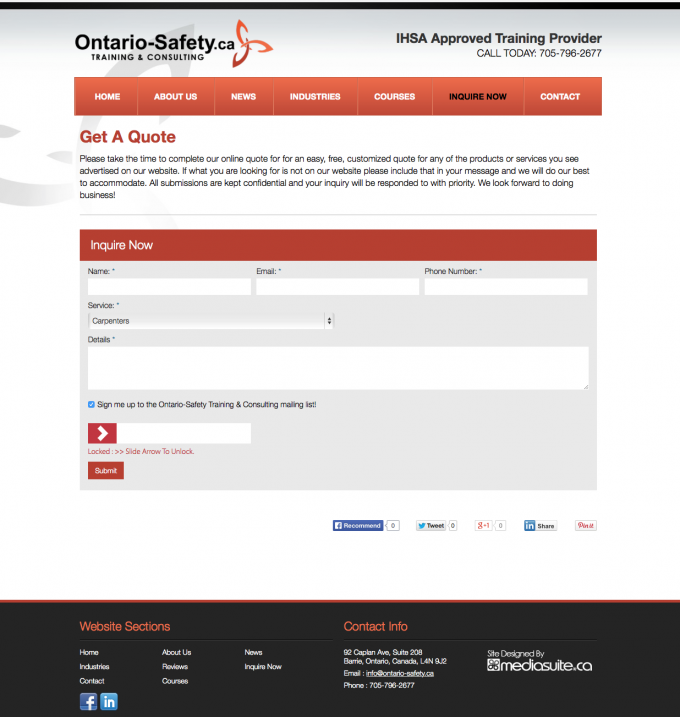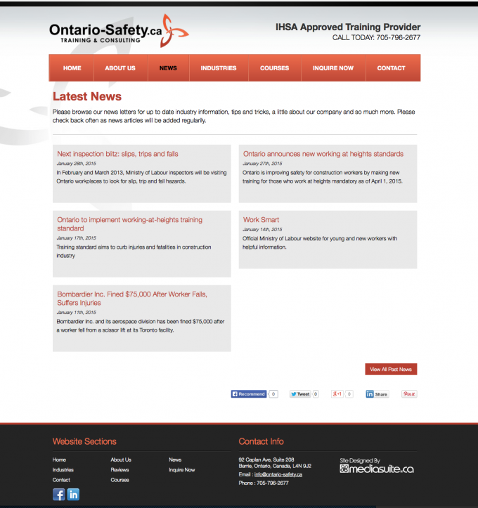 Les needed a strong start to this business in order to get his training packages in front of his potential customers and gain credibility. We developed a very clean, professional, and easy to navigate site that allows his customers to find what they need quickly and easily, and provide them the confidence they need to do business with Ontario-Safety Training.