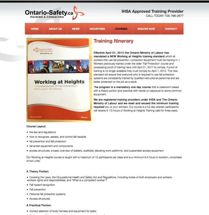 Ontario-Safety Training is a new business providing safety training programs for individuals who work at max-heights. Les, owner and founder of Ontario-Safety Training, worked as a crane operator for years and with the Ministry of Labour recently implementing new laws that require all individuals who work at max-heights to have certified training, he saw the opportunity to get involved.