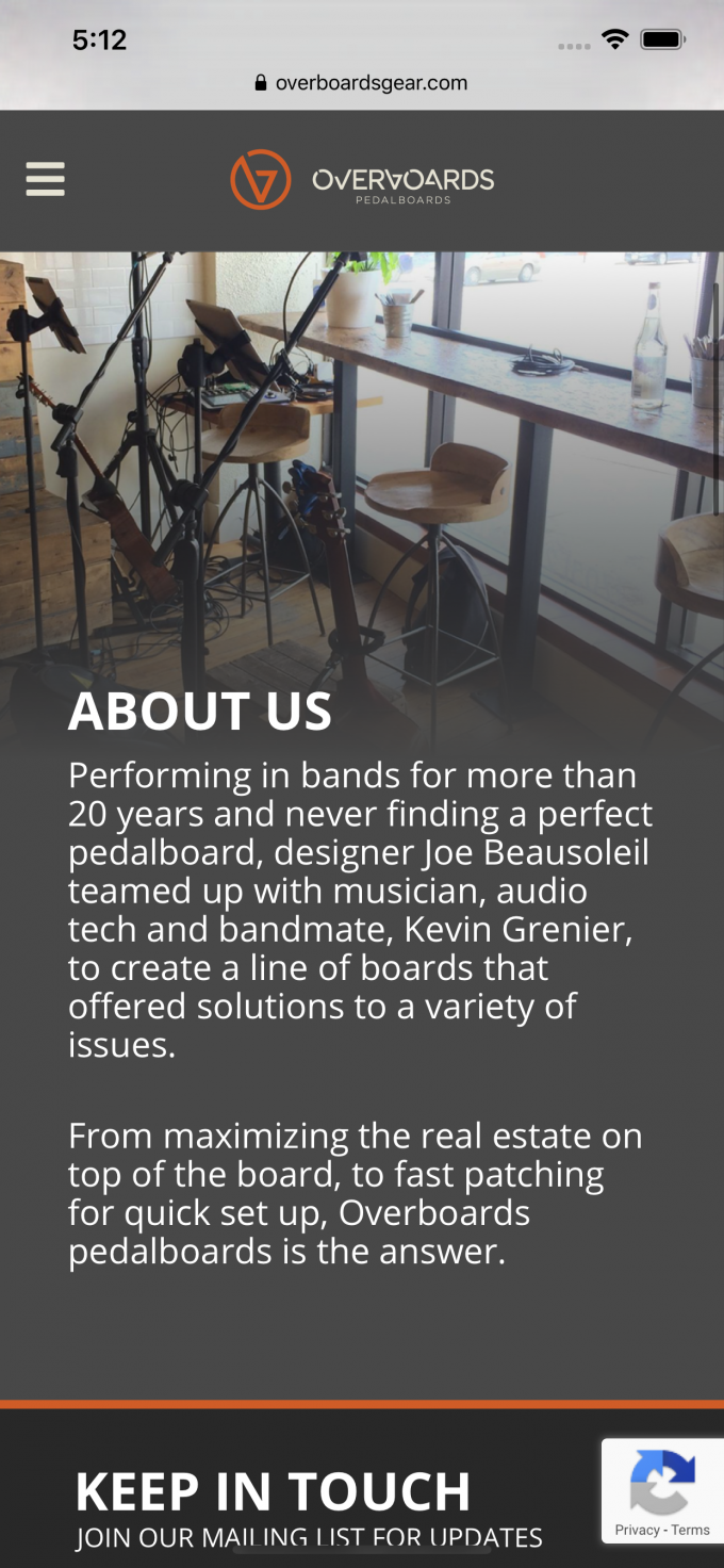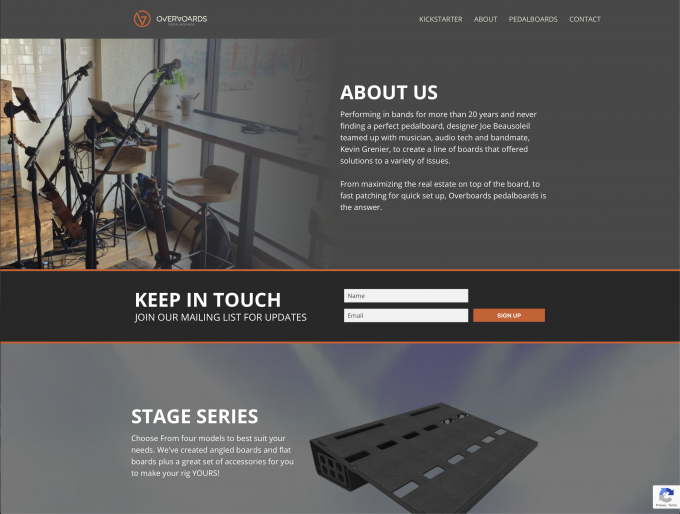 We created this highly visual website to support the sale of an innovative product for housing guitar petals.