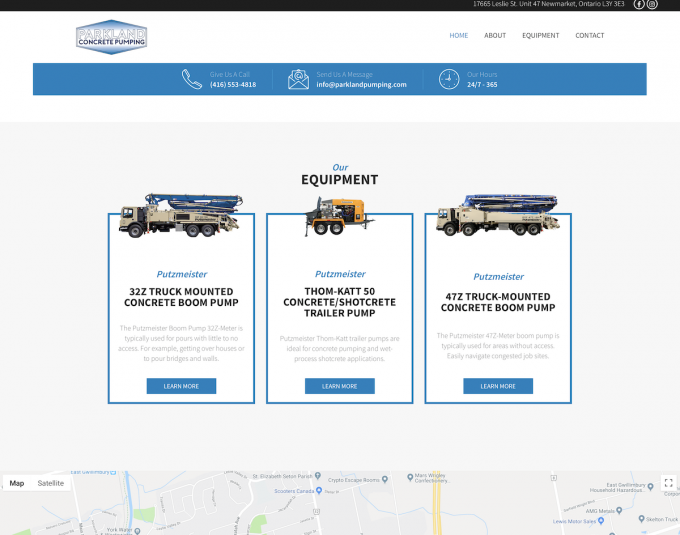 This commercial concrete pump rental company needed a very simple website that allows them to showcase the 3 machines they have available for rent.
