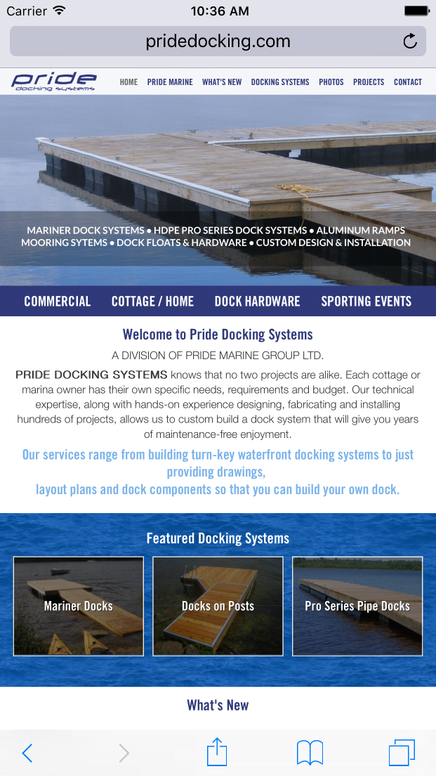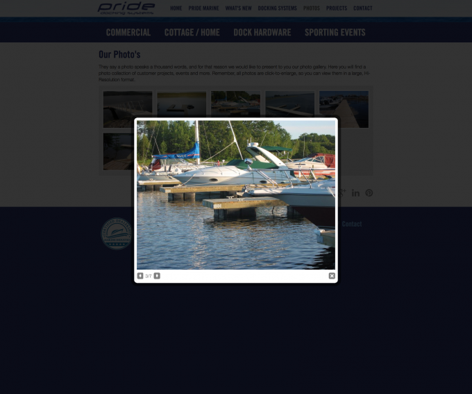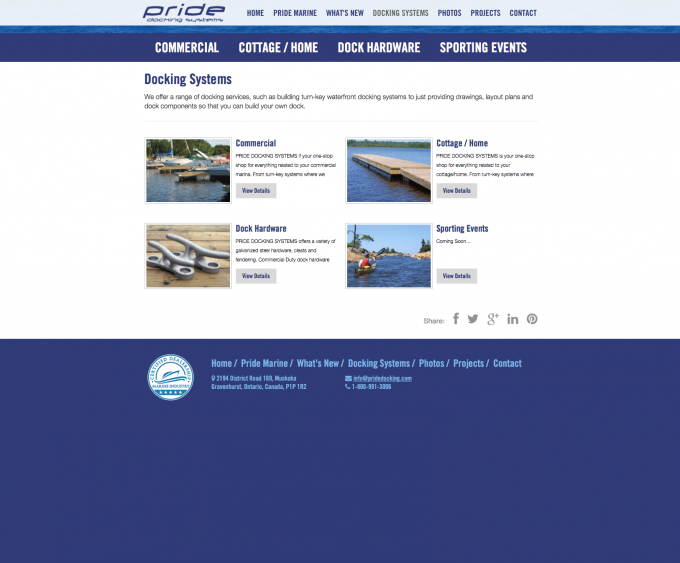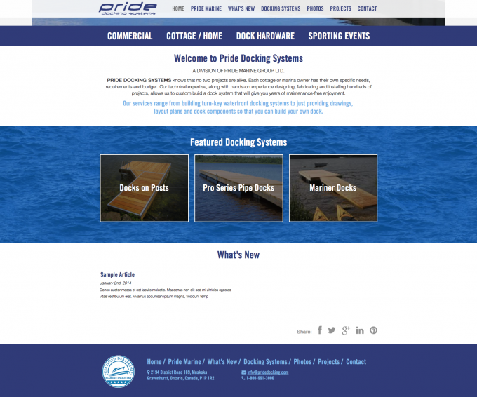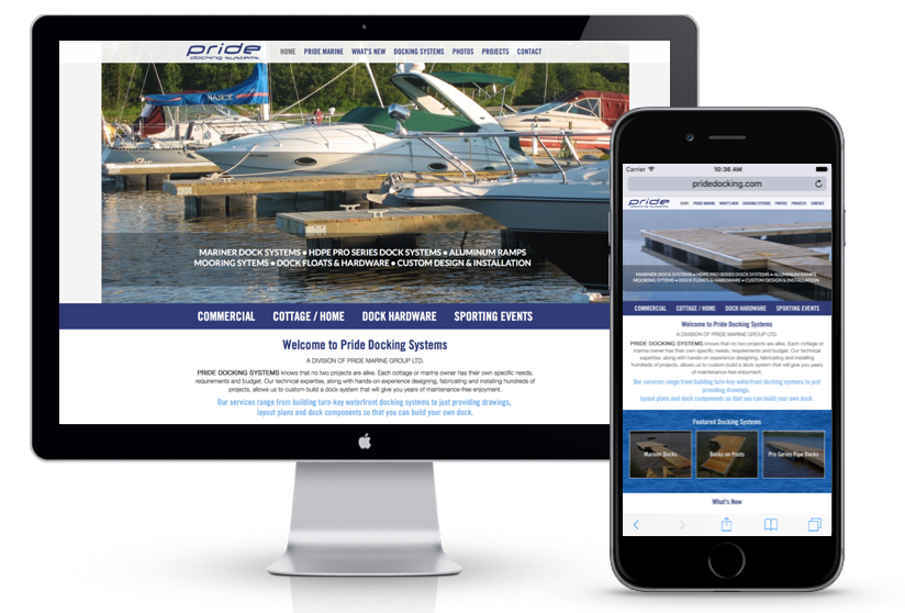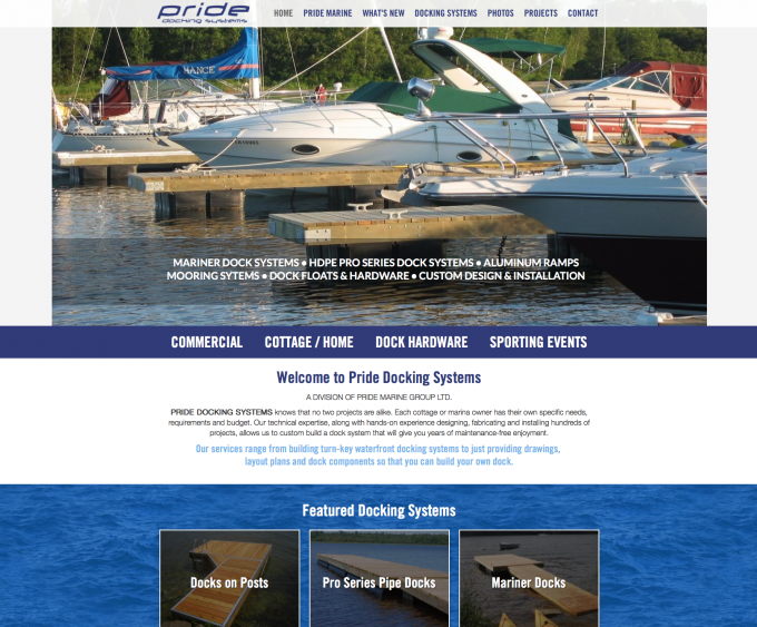 Pride Marine Group wanted an exclusive mini website to promote their dock products. This simple online brochure type website is provides easy to follow access to the details about the products in a clean, professional design.