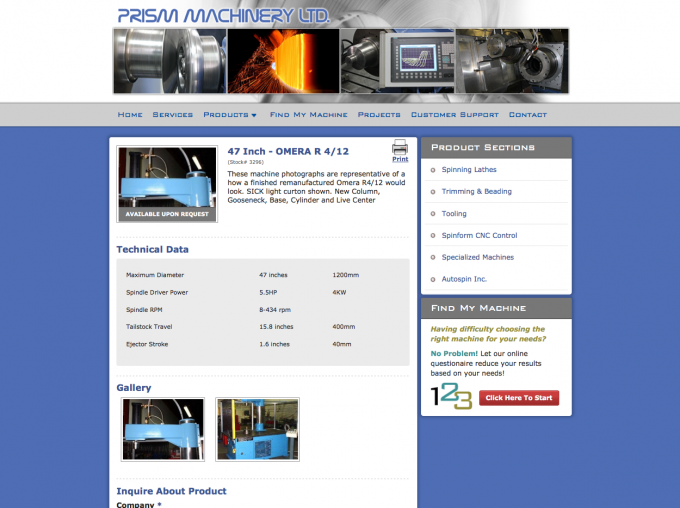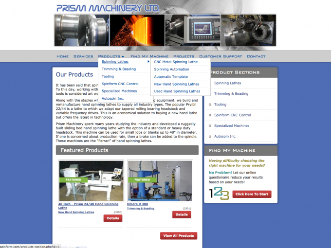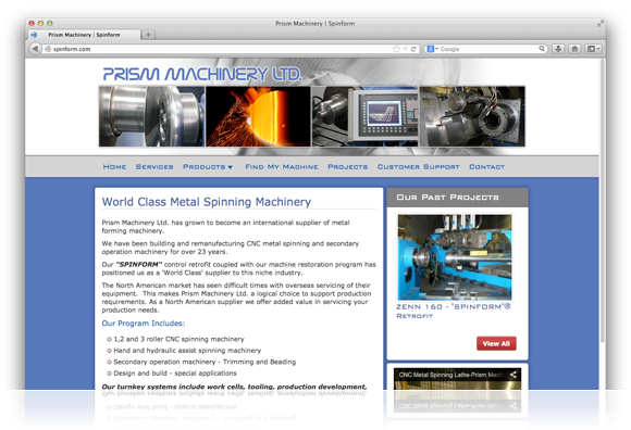 Prism Machinery Ltd. has grown to become an international supplier of metal forming machinery. We have been building and re-manufacturing CNC metal spinning and secondary operation machinery for over 23 years. Our "SPINFORM" control retrofit coupled with our machine restoration program has positioned us as a 'World Class' supplier to this niche industry.
