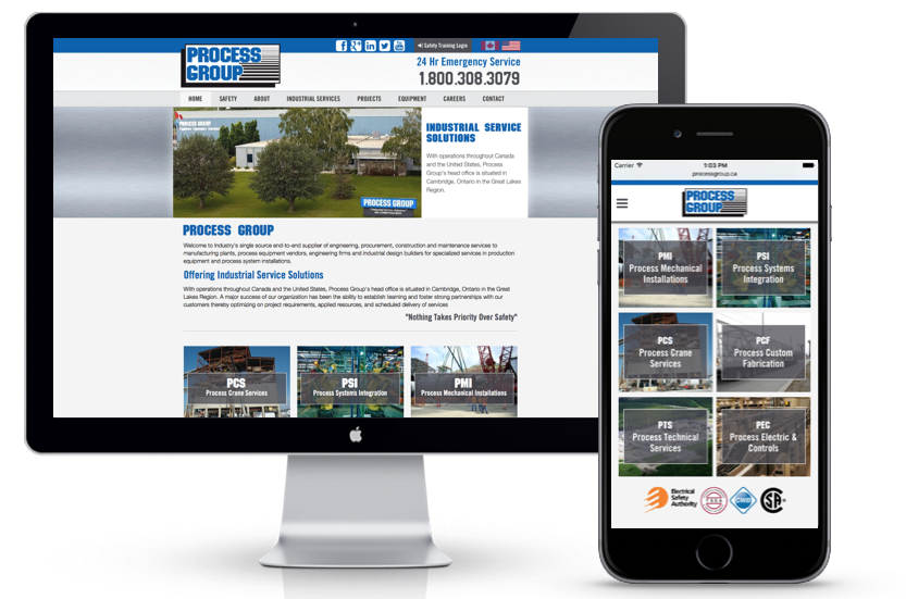2016 Was the year Process Group a large company out of Cambridge Ontario with reach across the United States decided it was time to update their website. Process Group found us by typing "Website Design Ontario" into Google and there we were. Because they provide services across Canada and into the United Sates they wanted to work with a company that was successful at obtaining Search Engine Optimization outside of their immediately location. We were number one on their search and after further review their number one choice to rebuild their website and spearhead all online initiatives.
