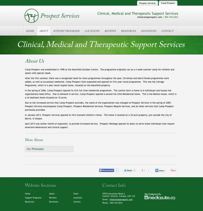 Prospect Services provides clinical, medical and therapeutic support services for families including respit. One of the challenges they faced was providing easy to follow content to help their customers in their time of need. Through Command Centre Content Management System we delivered a professional and easy to navigate website that they can update easily and often.