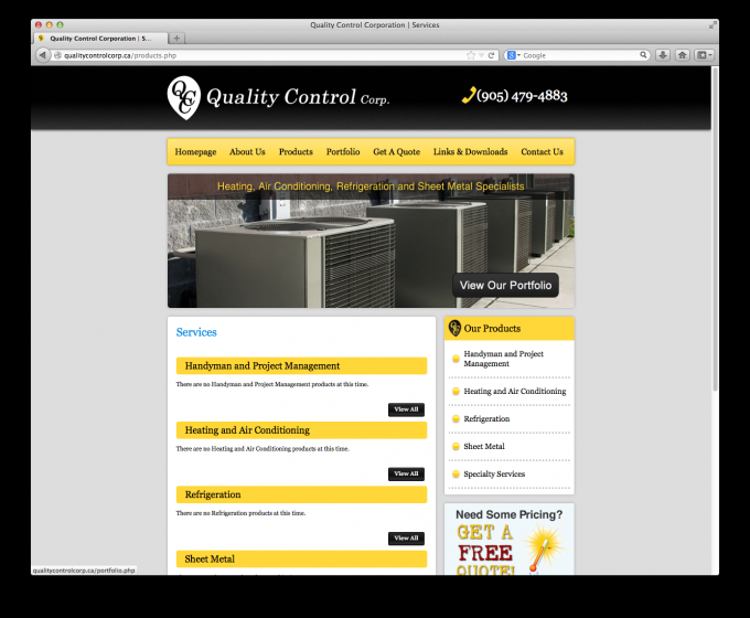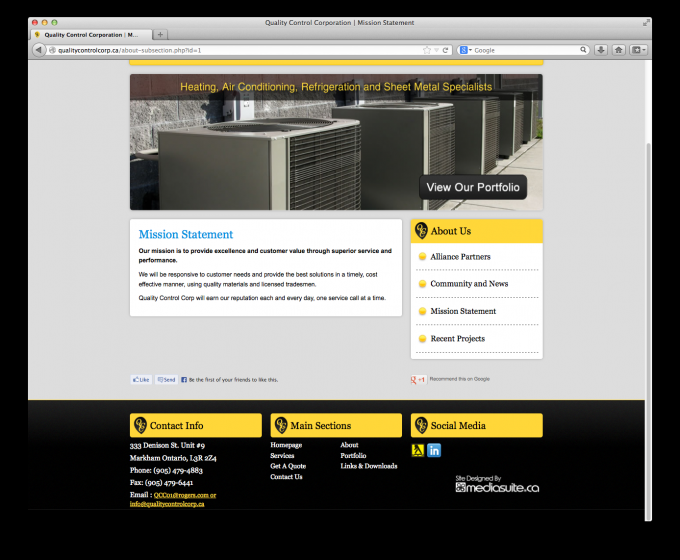 Quality Control Corp is a full service Commercial and Industrial Mechanical Maintenance and Construction service provider since 1998. Our corporate office is located at 333 Denison Street, Unit 9 in Markham, Ontario. From this central location, we provide our customers, one-stop full construction, service and maintenance on their heating, air conditioning, refrigeration, as well as sheet metal and handyman services across Ontario.