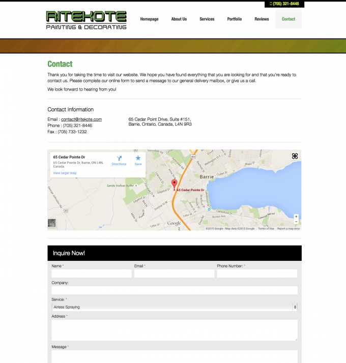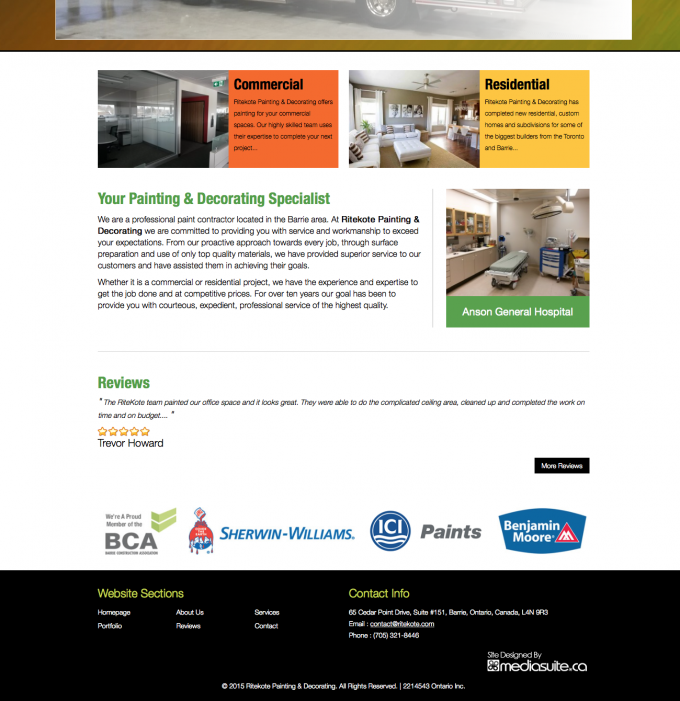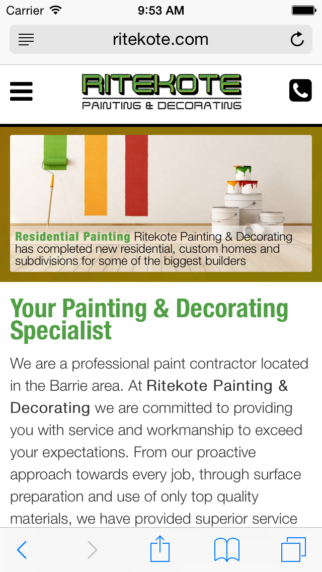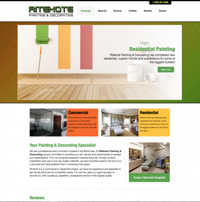 RiteKote is a local commercial and residential painter looking who wanted a redesign of their current website to deliver a more professional representation of the business. Here we developed a custom website that provides RiteKote an extremely easy to use platform for updating content on both desktop and mobile websites in minutes. This company now has a website they can refer new customers to with confidence ;)