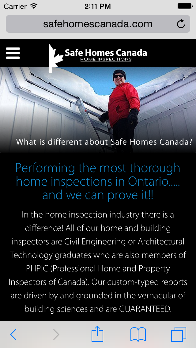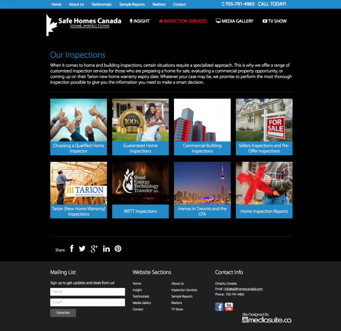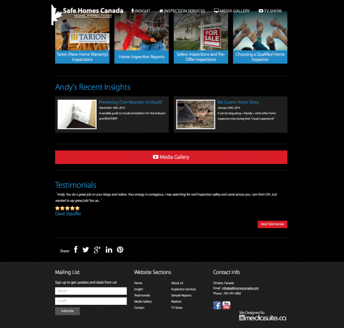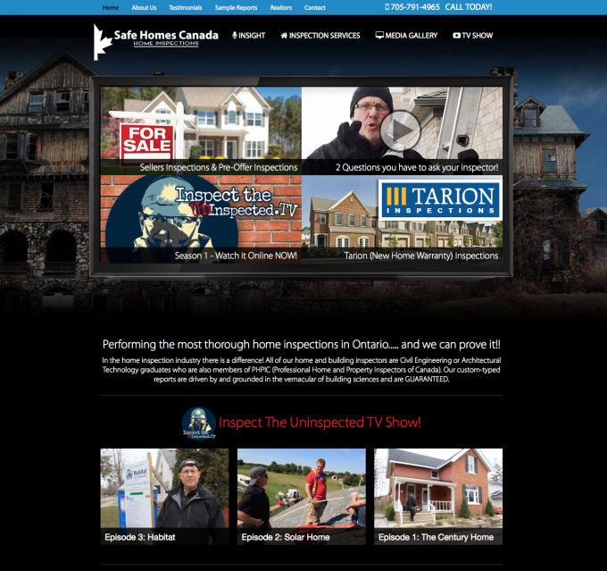 This home inspection company offers a completely unique and specialized approach to home inspection. With a ton of knowledge and experience Andy Christie of Safe Homes Canada needed a unique custom website that would both showcase the services he provides and be a huge information delivery system for his huge amount of content and even his television show!