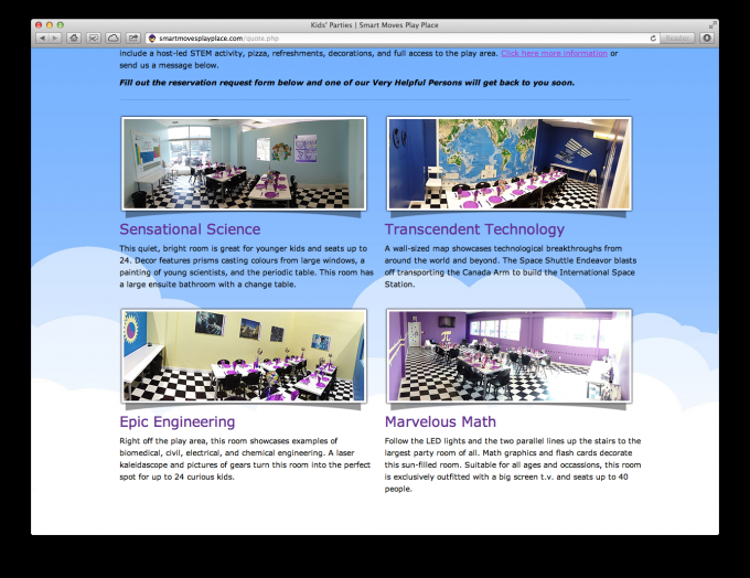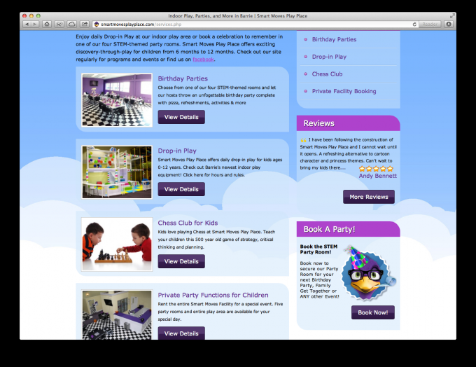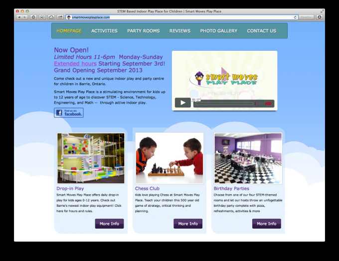 Smart Moves Play Place is a STEM-based indoor play centre offering drop-in play, children’s parties, educational programming, and more. Themed on the four tenets of innovation -- Science, Technology, Engineering, and Math -- Smart Moves Play Place offers a totally unique experience of learning-through-play, delighting and engaging children ages 6 months to 12 years old.
