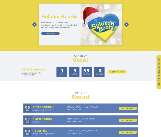 These professional entertainers featured on Treehouse needed a fun and professional website to showcase their tour dates, merch and so much more!