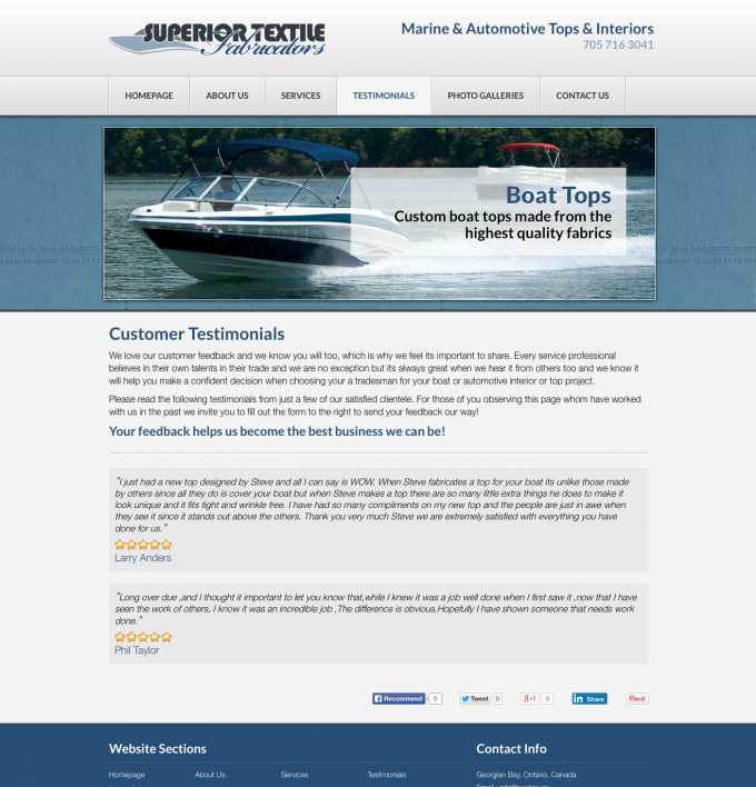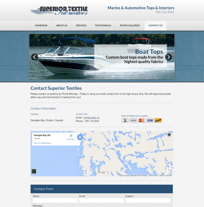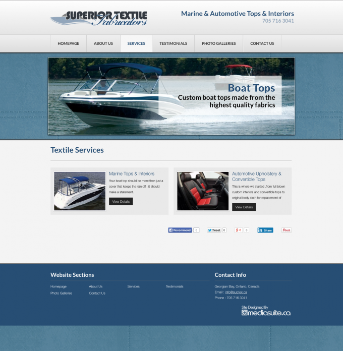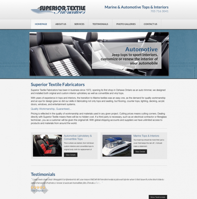 Superior Textiles has been a customer for a number of years now. Their first website was getting a little expired and Steve was excited to have some of our new features and an updated design on his website, so we moved him into a new version.